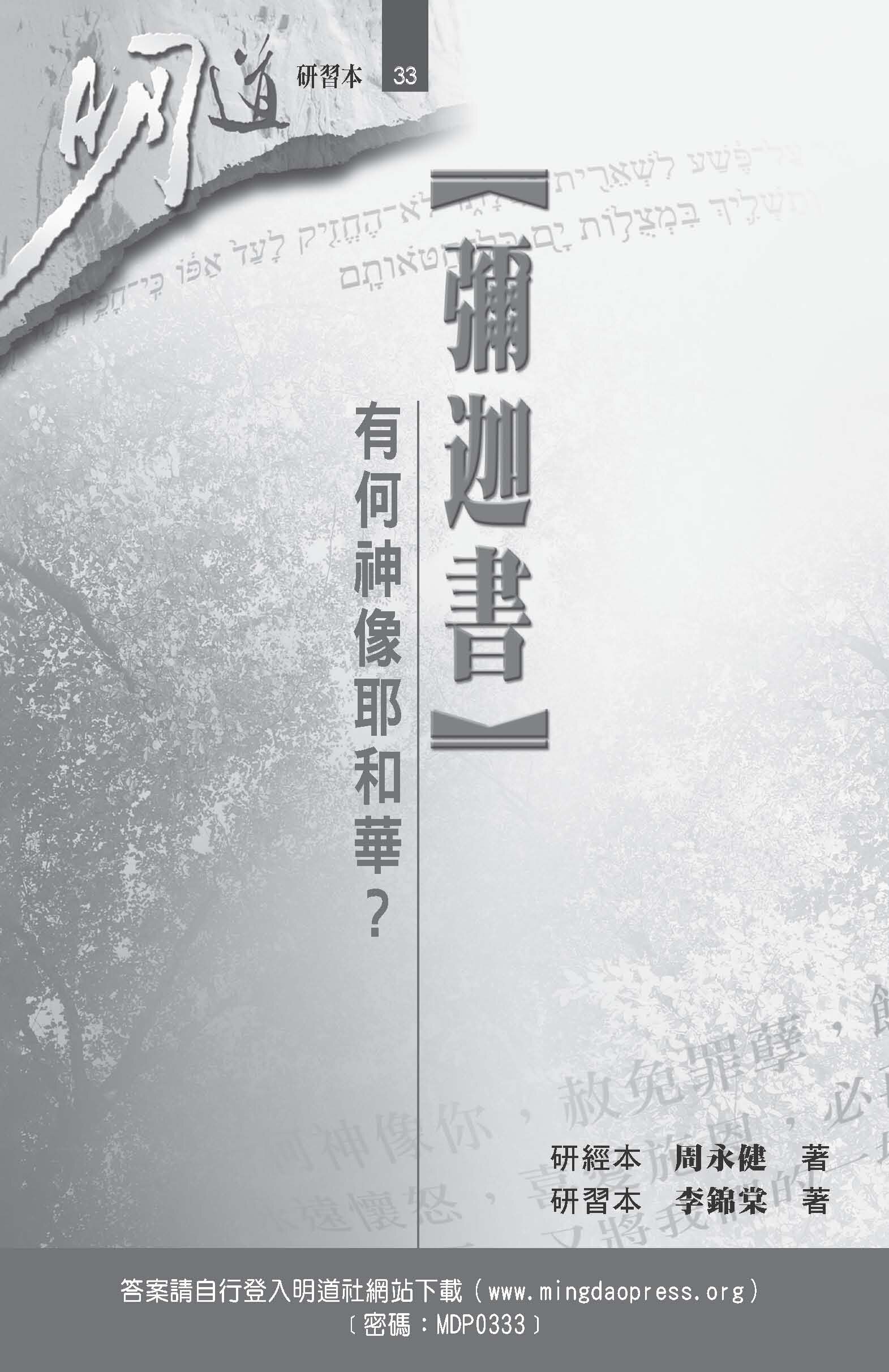 本書是根據《彌迦書:有何神像耶和華?》研經本的內容,運用歸納式研經法中的「觀察」、「解釋」和「應用」三個步驟編寫而成。讀者可以透過書中的問題,進行個人深入的彌迦書研讀,也可以小組討論的形式,一同發掘經文的意義及其在生活中的實際應用。